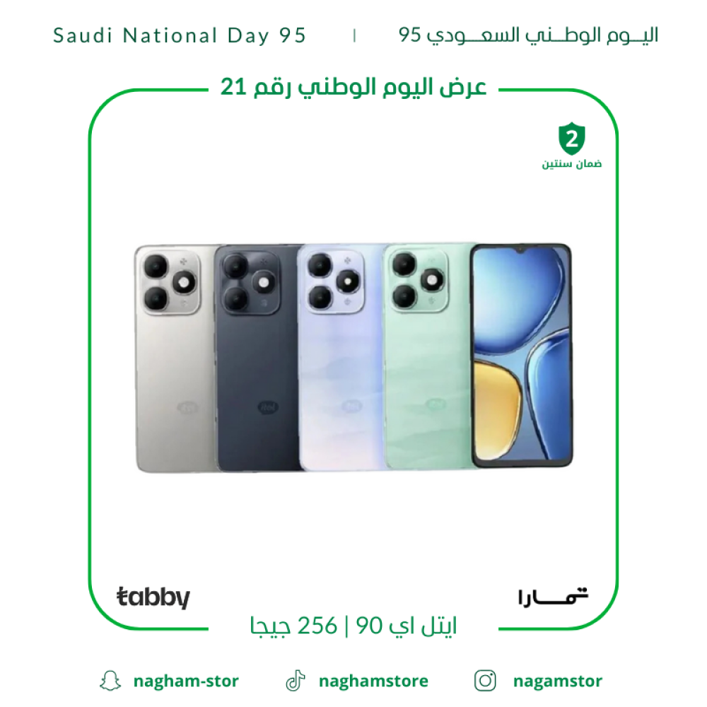 تمتع بمساحة تخزين واسعة مع ايتل اي 90 بسعة 256 جيجا، لتحتفظ بكل ملفاتك وصورك وفيديوهاتك براحة. تصميم عصري وأداء يلبي احتياجاتك اليومية بكفاءة. متوفر الآن بعرض خاص لليوم الوطني