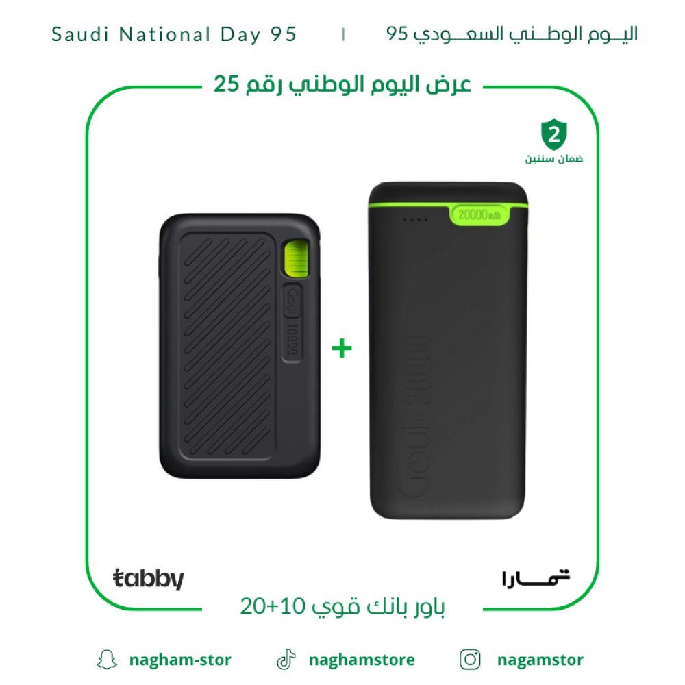 لا تحمل هم نفاد البطارية مع باور بانك قوي 10+20. يتميز بـ بكج جوي باور بانك 10,000 + باور بانك 20,000 ليمنحك تجربة شحن عملية تدوم طويلاً أينما كنت. فرصة لا تفوت في اليوم الوطني